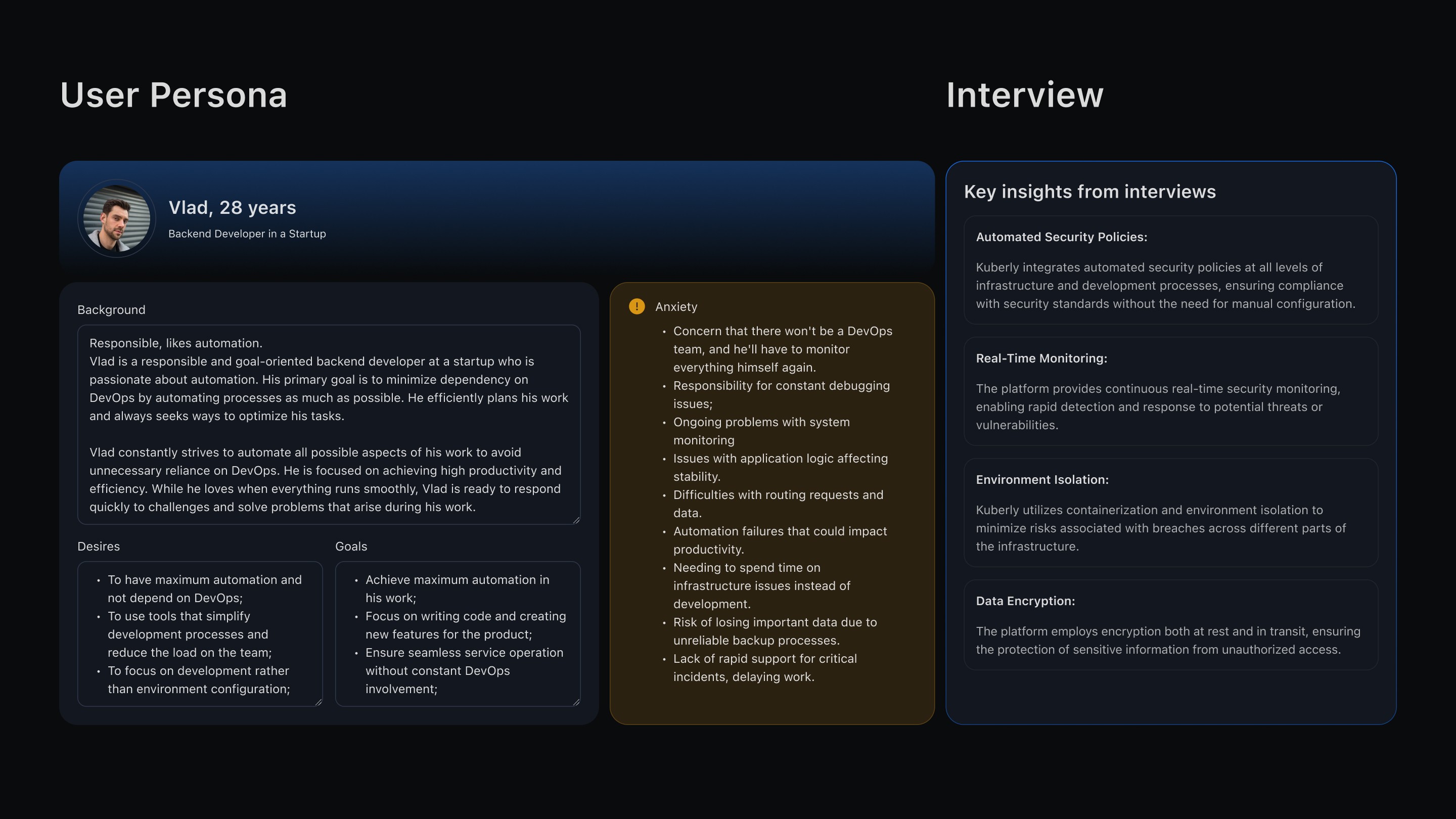 The team had a ready-made analysis of competitors and conducted interviews. Based on the data, they created User Personas, Empathy Maps, and CJM.