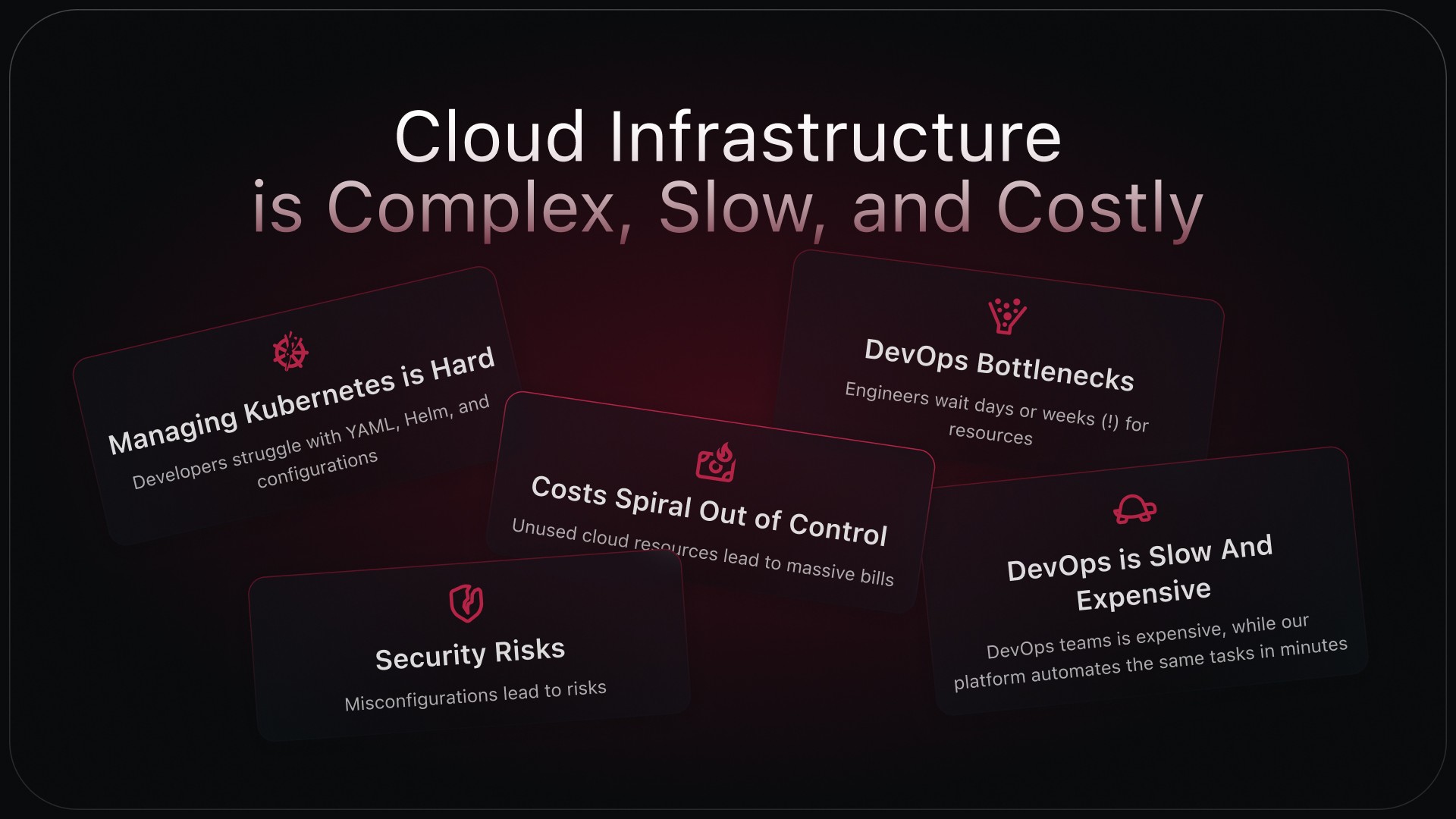 Non-DevOps users face high cognitive load due to overwhelming services, parameters, and terminology, making onboarding and daily operations difficult.