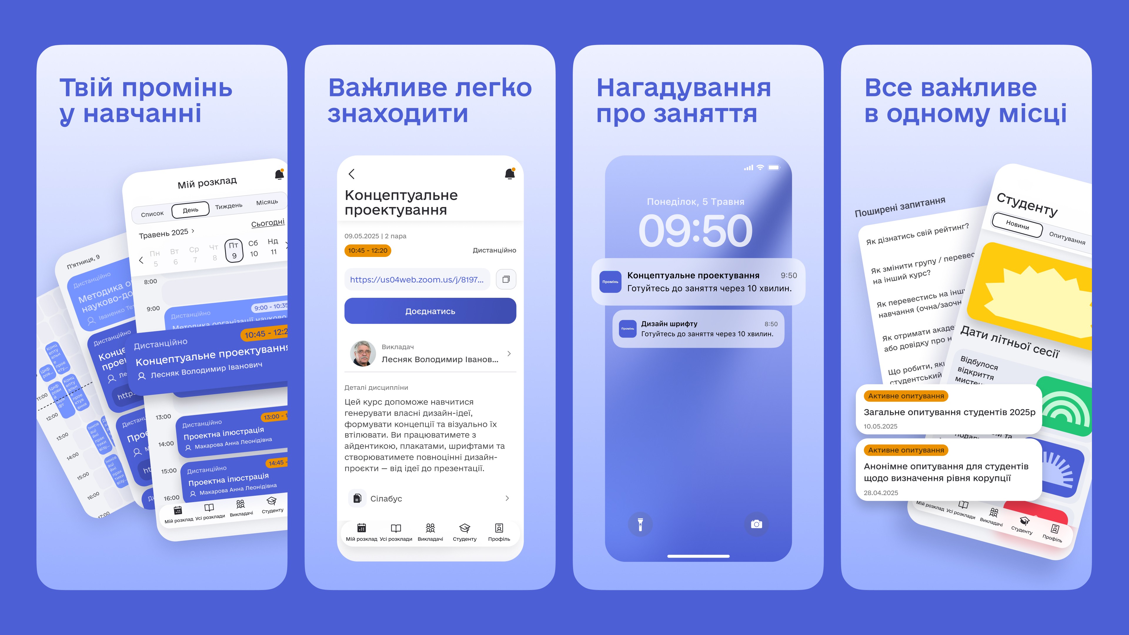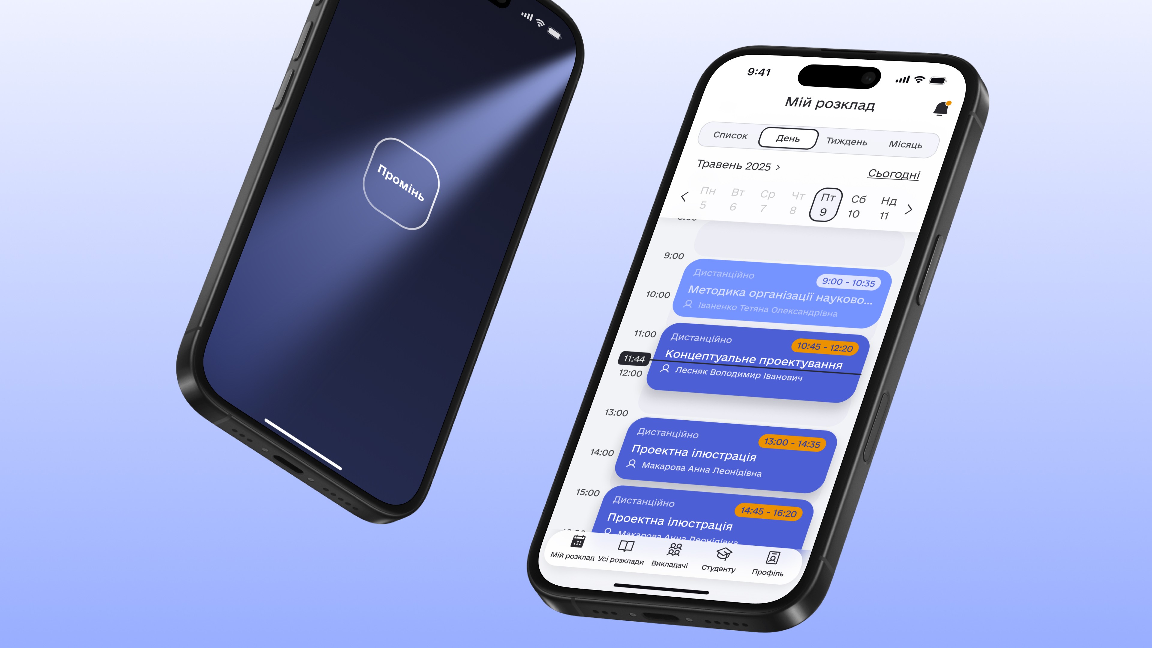 Promin is a mobile product designed within the context of Ukraine’s national digital service ecosystem. This application addresses the issues of outdated class schedules, scattered communication, and limited access to essential academic information. Promin is designed as a lightweight tool to enhance and simplify educational workflows for students, teachers, and administrators.